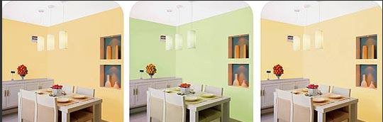 在比较年轻人士的居住空间中,使用鹅黄色搭配紫蓝色或嫩绿色是一种很好的配色方案。鹅黄色是一种清新、鲜嫩的颜色,代表的是新生命的喜悦。如果绿色是让人内心感觉平静的色调,可以中和黄色的轻快感,让空间稳重下来。所以,这样的配色方法是十分适合年轻夫妻使用的方式。