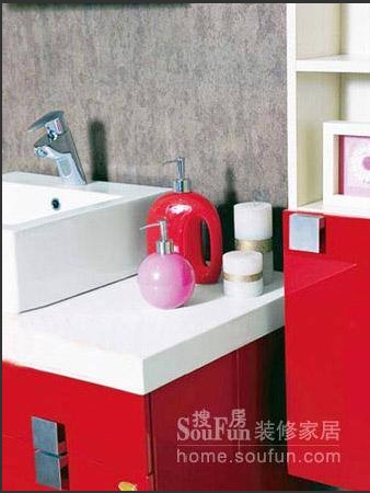 假如你够大胆,大红颜色的卫浴柜也不失为一个很好的选择。但需要注重的是,假如选择红色家具成为卫浴间的主角,一定要配套的选择与之能够相呼应的小配饰,不然,大红的家具难免显得有些突兀了。