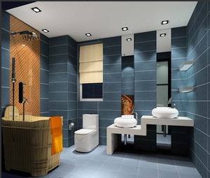 用瓷砖冷、暖色的对比来装饰浴室,绝对是一个好方法。蓝色瓷砖对光的反射似乎让人有置身海洋的梦幻感觉,用在干区呈现的效果冰冷清冽。橘色系的瓷砖的散发温暖柔和平衡了浴室色彩,整个色彩环境让置身沐浴的人体会温暖中的一丝舒爽。