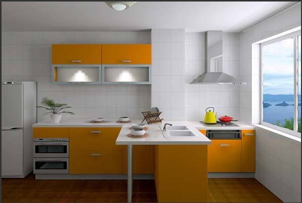 4、色彩与灯光——厨房的色彩可根据个人喜爱选择,通常采用中性色调。中央照明宜采用吸顶灯,灶台、工作台的局部照明,可用嵌入式日光灯或射灯。
