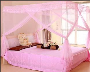 最传统的蚊帐是方帐,在床的四个角落树四根竹竿或者木杆之类支撑起来,简单而实用。后来出现的宫廷伞帐,多了一些优雅与浪漫。而如今,人们对家庭装饰设计越来越重视,床的款式不断更新,花样多变,蚊帐的款式也推陈出新,颜色也从以前单一的白色,发展到现在有米黄、粉红、淡蓝、紫色等多种颜色,轻易地与房子的整体效果搭配,更好地营造出家居氛围。
