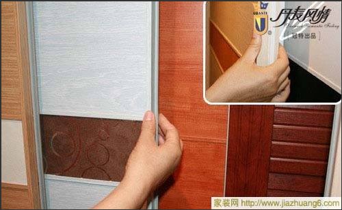【贴士】购买衣柜一定得考虑柜门门板的厚度是否厚实,高度是否足够。移门用的木板,最好选择10mm或12mm厚的板材,使用起来结实、稳定、耐久。门板高度则决定能否装修至天花顶。欧美国家时尚衣柜大多崇尚装修一体化效果,要求单块板材高度2.8米以上,高达天花顶。