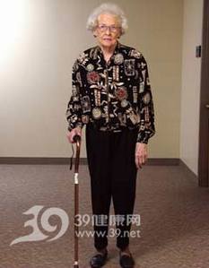 保持手臂垂直放下,肘关节弯曲30度,手腕能够接触到拐杖的顶端。