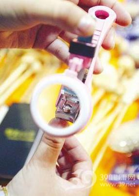 这个指甲钳上装有1.5倍的放大镜,使老人不用戴老花镜也能轻松看清指甲。