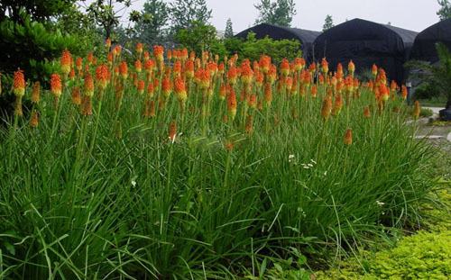 火炬花原产于南非,人工 栽培仅有100多年的历史,我国50年代方始引入栽培。火炬 花喜光,喜温暖湿润的气候,忌烈日酷暑,亦忌严寒。我国 最适宜的生长区,为南方海拔较高、冬无严寒、夏日凉爽的湿润环境。南方的低丘高热地区,夏季宜适度遮荫"喷雾降 暑,或调整开花期,于头年冬末在塑料棚内种植,春末夏初 开花,也可于高温期过后种植,入秋以后开花。北方以向阳 避风处生长较宜,覆盖防寒越冬。对土壤要求不严,一般肥 力中等、结构良好的酸性土或微碱性土,均可生长,但以富 含腐殖质、排水良好的轻粘土至壤土生长最宜。喜湿润土,但 忌积水地, 花期需经常浇水或喷雾保湿。 种植时需施腐熟人 畜粪肥或饼肥作基肥,苗期施氮肥追苗,花茎抽出前后,施 磷钾追肥。