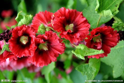 蜀葵花原产于我国,以四 川省栽培最多,故有“蜀葵”之称。喜光,不耐荫蔽,喜温 暖向阳地,能耐烈日酷暑,亦较能耐寒冷,我国南北大部分 地区均可栽植,植株较高,花、叶亦较大,抗风力较差,宜 成丛群栽或种植稍深。对土壤肥力要求不苛刻,一般中肥土 壤均可生长,但以较肥沃的疏松地生长较好,开花亦较多。较 耐干旱,不耐积水,要求排水良好。抗性较强,少有病虫害, 偶有锈病,可剪去病枝,并喷波尔多液或生石灰水防治。虫 害有蚜虫和红蜘蛛等危害嫩梢和叶片,注意及早发现,喷敌 敌畏等约液防治。