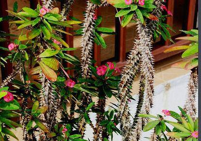 虎刺梅适合生长在空气对流通风透气的地方,像庭院、阳台就比较好,如果环境过于封闭不通风就会导致叶片发黄。