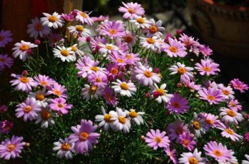 玛格丽特花与雏菊还有很明显的区别,玛格丽特花有着木质化的茎部,经常用来装饰花坛,但是雏菊的茎部是不会出现木质化,玛格丽特花的茎干可高达1米以上,并且品种比较多,大花糖果品种的花瓣上可有多种颜色,观赏能力极高。