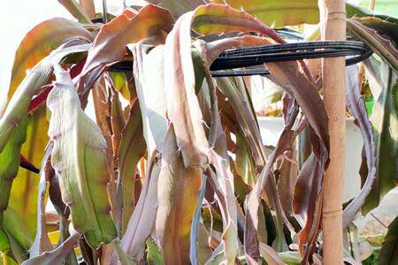 令箭荷花在出箭时,除了要保证光照和养分外,就要让新箭一次长成型,等到新箭长到30cm高时,可以将新箭的顶部掐掉,防止新箭进行二次生长。从荷花令箭的修剪图片中不难看出,如果不掐掉新箭的顶部,二次生长的新箭会一节粗一节细,这样就会十分的不美观。