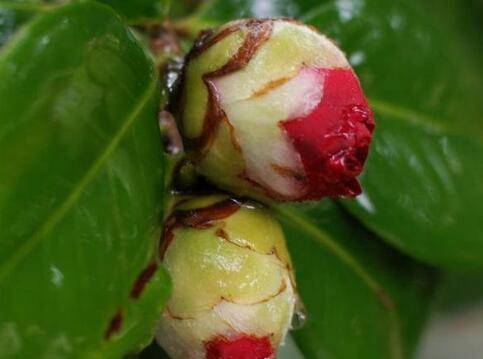 茶花舒蕾原则每个枝条最多可以留一个花蕾。细弱枝条不可以留花蕾。但是要注意的是对滇茶舒蕾是要小心为上,必须2只手一起,一只手要保护好要舒蕾的那个芽头,一只手进行舒蕾,否则很容易连芽一起折断。因为滇茶枝条比较脆。滇茶发芽不多,花蕾可以稍微比华东茶和外国品种多留几个。