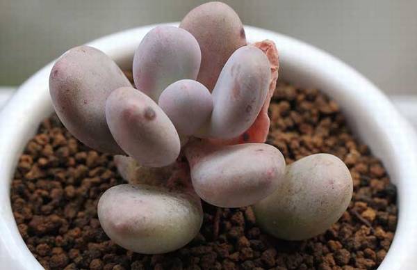 桃美人可采用枝干扦插、叶插和播种的方式繁殖,一般采用叶插法,最好在春秋季进行,将健康、完整、饱满的叶片放在微潮、疏松的土表,不要暴晒,几天或数周后它们会自然萌发根系和小叶片,当根长达2~3厘米时可将根覆上一层薄薄的细沙,可长成独立的小植株。