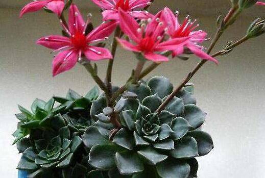 别露斯就是我们常见的美丽莲,属于景天科风车草属多肉植物,它叶片呈莲座状排列,肉质叶灰绿至灰褐色,卵形,顶端有小尖。花星状,5瓣,深粉红色。紧凑的莲座状叶盘灰绿褐色,被有白粉,花洋红色。美丽莲原产墨西哥,喜温暖、干燥和阳光充足的环境,耐干旱,忌水湿。