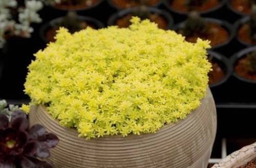 黄金万年草盆栽,一般不用到花店买,直接扦插培育就行,因为这种植物很容易生长繁殖,也很容易爆盆,只要身边有花友栽种,随便找人掐几段来扦插就好了。