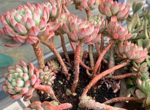 多肉养成老桩多头就要适当进行修剪,将生长徒长部分修剪下来,砍头下来枝条进行扦插繁殖。另外还将病枯枝、老枝、重叠枝、细弱枝等都剪掉,这样避免养料消耗,达到整株通透性和透光性。