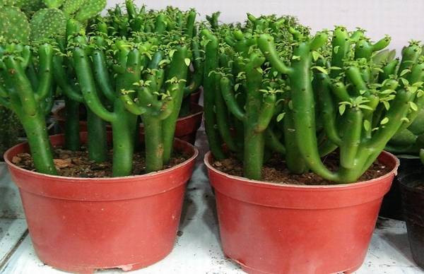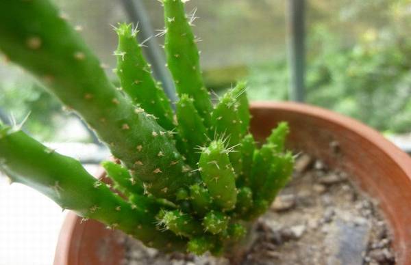 准备一个稍微大一点的盆,粗泥盆比较好,配好土,并保持有一点湿度。选一节比较茁壮的茎植入盆中,再喷水使盆土表面进行粘合,然后放在太阳下暴晒即可,不要经常浇水,最好保持盆土的干旱,过一段时间就会有一些经黄色的小刺来从茎干上面长出来,茎干就会慢慢变偏。养过其他喜水植物的花友们一定要把习惯扭转过来,千万不能经常浇水,这是迫使长出掌声状茎片的方法。等茎片长到宽约2cm左右的时候,就可以上盆了。