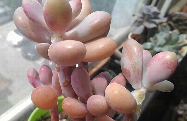 4、夏季:桃之卵夏天养殖的时候要注意通风遮阳,每个月3到4次水,少量在盆边给水慢慢度过盛夏,维持植株根系不会因为过度干燥而干枯就可以。