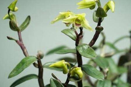 石斛生长期结束后,秋天就要为花芽的产生做好准备,这个时候要去掉夏季遮阴的东西,让它尽量多接收点阳光,等成熟茎条封顶不再长出新叶子,并且开始慢慢落叶后就会长出花芽了。注意,10月后气温若是骤然,那别立刻将石斛盆栽移入室内,经过室外低温反差更易形成花芽哦,等花苞点开始鼓起后,可以根据环境干湿程度,控制石斛盆栽的浇水量和浇水频率,偶尔适当喷雾即可。