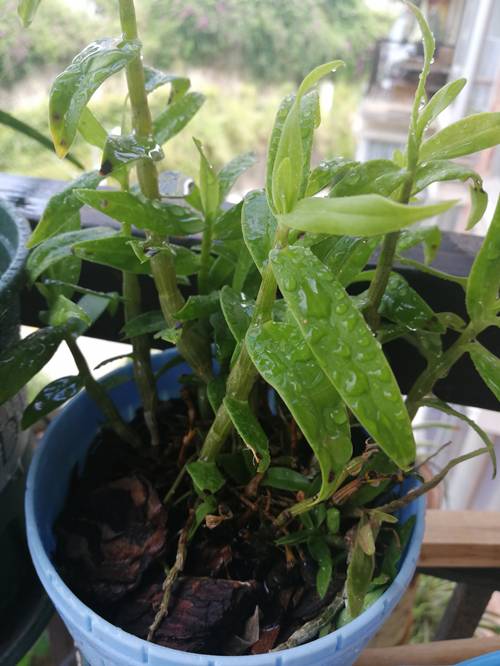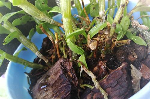 就有经验的花友给支了个方法:用发酵过的松树皮,或者蛇木板,或者碎石加松树皮,不能用土,任何土都不能用。碎木快、树皮、水苔都可以。铁皮石斛属于附生兰,可捆绑或是附着在木桩上养。