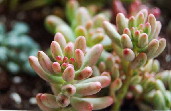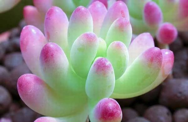 4、浇水:虹之玉对水分的需求较少,基本上每周浇水1~2次即可,虹之玉要遵循不干不浇,浇则浇透的原则,气温较低的时候要适当的减少浇水量。