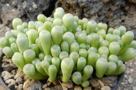 多肉五十铃玉植株非常肉质,密集成丛,肉质叶棍棒状几乎垂直生长,株丛直径10厘米,根很细。其叶色淡绿,基部稍呈红色,叶顶部有透明的“窗”。五十铃玉非常容易群生,爆发的很快,而且株形奇特、开花美丽,为室内小型盆栽佳品,那么如何养好五十铃玉呢?下面就和小编来看看五十铃玉的养殖方法和注意事项吧。