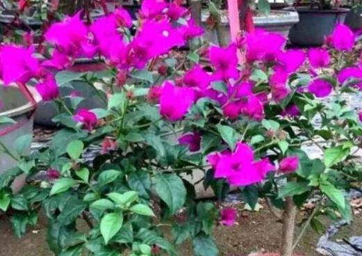 将剪取的三角梅枝条剪成20cm左右的小段,剪去下部侧枝,上部侧枝剪短,可留几个小叶片。将枝条的下端剪成斜口(马蹄状),然后将20一30根枝条用皮筋捆住待用。用白糖20克,加入温水150一200克搅拌融化,待糖水冷却后,把捆扎好的三角梅枝条浸泡在糖水中3一5cm,浸泡时间40一60分钟。然后捞出晾干,白糖水可以在剪口处形成一层保护膜,阻断土壤中一些腐殖材料的侵害。用提前消毒杀茵杀虫的素营养土做扦插基质,先用木棍儿在基质上捅孔,然后把枝条儿插入,轻轻压实。这样先用木棍捅孔再插,是为了防止插条的剪口被搓伤起毛,影响剪口的愈合和生根。然后喷透水,上面设置个小型拱架,用塑料薄膜覆盖保温保湿,一般30天就会伤口愈合生根发芽,老枝条发芽不久,50天左右就能长出花苞,然后开放。