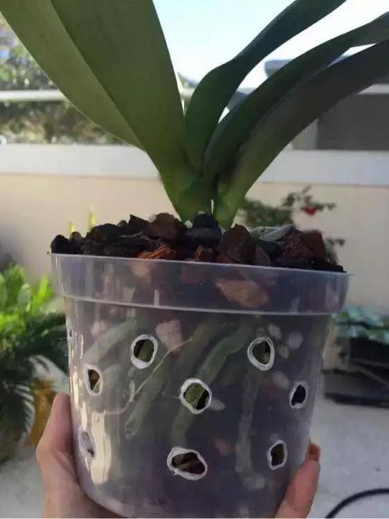 蝴蝶兰属于附生型植物,气根长在外边可以吸收水分和养分,养蝴蝶兰都是用水苔或树皮当栽培基质,一般的园土可不能用来养蝴蝶兰,否则养一盆死一盆。