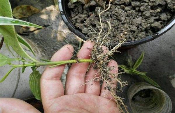 扦插的时候尽量在植株还没有开花的时候准备枝条,因为这个时候枝条营养是非常丰富的,生根率较高。做好所有的准备工作后,控制好扦插密度将插穗垂直插入基质中,深度保持在5厘米左右即可。然后覆盖细土将其压实,让插穗基部与土壤充分接触,再浇透水,促进插穗生根。浇水后要加强管理,适当追肥,满足营养需求。还可进行水插,水插的成活率接近与百分百,水插一般在每年5-6月左右进行。保留插穗顶端两片叶片插入水中,注意换水,防止水质变质导致基部腐烂,大约20天左右后即可生根。