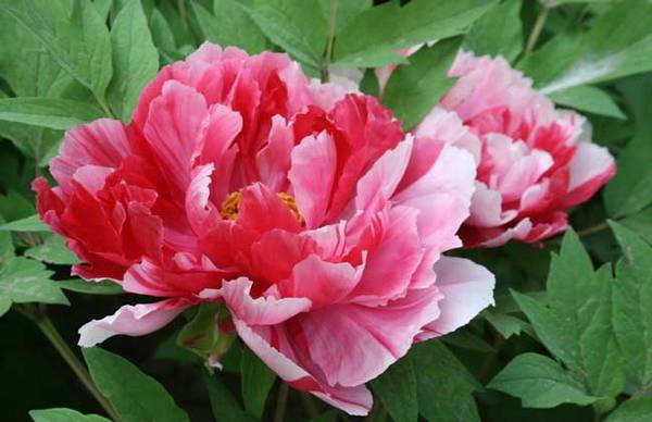 4、分株:牡丹分株的母株一般是利用健壮的株丛,进行分株繁殖的母株上应尽量保留根蘖,新苗上的根应全部保留,以备生长5年可以多分生新苗,这样的株苗栽后易成活,生长亦较旺盛,根保留的越多,生长愈旺。