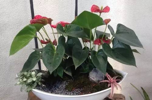 红掌又名花烛,为多年生常绿草本花卉,性喜温热多湿而又排水良好的半阴的环境,怕干旱和强光暴晒,适宜生长昼温为26-32℃,夜温为21-32℃。所能忍受的最高温为35℃,可忍受的低温为14℃。红掌花姿奇特美妍,花期持久,很适合盆栽,那么红掌的家庭养护要注意什么呢?下面来具体看看吧。