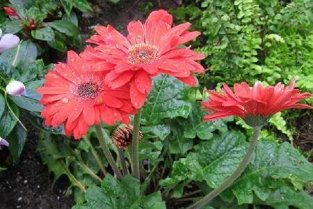 4、盆栽非洲菊对水分非常敏感,因此必须保证浇水的正确时间,在早晨或傍晚浇水,入夜时要使植株相对干燥。植株开始长根时必须从下部 浇水,可以采用底部渗透的方式;高温期间可以从植株上方浇水,但要注意防止从植株中心部位开始产生的真菌霉变。