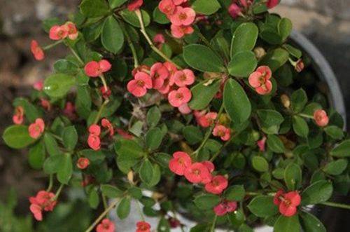 (4)虎刺梅耐旱,春秋两季浇水要见干见湿。夏季可每天浇水一次,雨季防渍水,冬季不干不浇水,盆内不宜长期湿润;花期也要控制水分,水大易引起落花烂根。