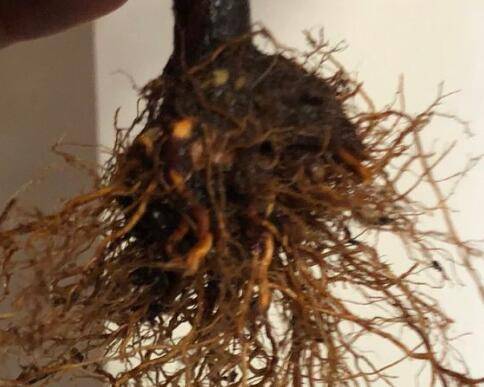 已经洗完的根部,其实经过这样折腾后,很多根系会自然枯死。