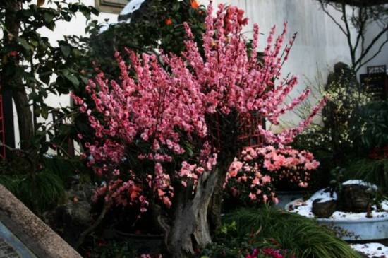 已是就是对刚买的红梅盆栽养殖方法的介绍了。刚买回来的红梅盆栽最好使用泥瓦盆栽种,能够增加透气性,土壤可以使用园土、煤渣以及腐殖土按照4:3:3的比例配制的,将土壤浇透之后可每隔3天左右的时间浇小水一次,花盆底部施加一定量的基肥,花期时可追施一次豆饼肥,保证良好的通风环境。