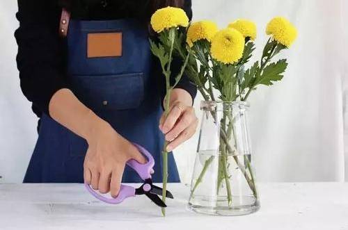为了增加根部的吸水性,可以用剪刀斜剪根系,一般以45度的角度斜剪2~3cm左右,另外,花瓶口距花头的长度最好控制在20cm以内,大约为一个手掌的高度,这样可以提高欣赏性,如果花瓶十分细长,按可以适当多留点。