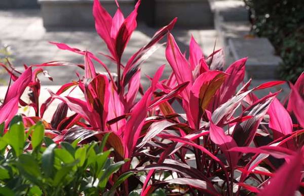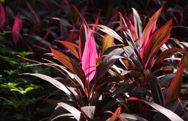 3、朱蕉对光照的适应能力较强,短时间的强光或较长时间的半阴对朱蕉的生长影响不大,夏季中午适当遮荫、减弱光照强度对叶片生长极为有利。