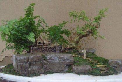 山水盆景中装饰物较多,上面的土壤比较的少,所以养分供给可能不足,所以增加营养非常重要,可以更换一些壤土,随时补加新土。还要施加一点养料,尽量施加一点浓度偏低的肥料,但注意不能弄脏了山石。