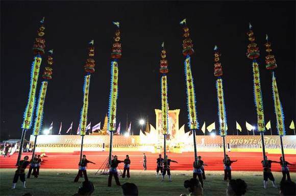 建幡最底部的幡箍直接与表演者嘴、脚、手等部位接触,采用的是柔软的布料;幡斗位于幡顶的上方,一般为两个,起装饰作用;而处于建幡最上端的是幡旗,最先由两片翅膀状的纸片构成,后改为长方形旗帜,为了减少阻力,现在更多的是采用三角形的旗帜。