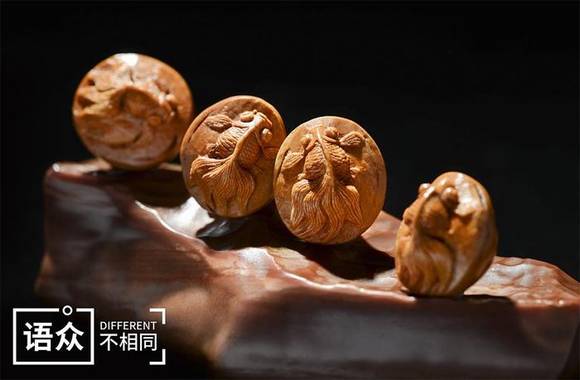 潍坊核雕采用桃核材质,因桃核的麻纹各不相同而对技艺要求较高,即兴创作性较强,每件作品各不相同,具有不可复制性。而中国数千年桃文化的积淀熏染,更使核雕作品拥有了深厚的文化内涵和极高的收藏价值。