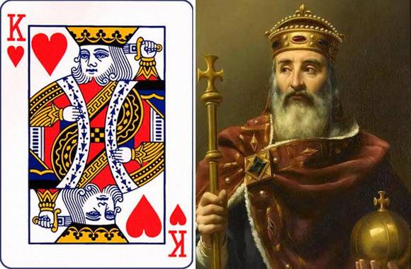 查理在治国方面有着卓越的建树,尽管作为欧洲历史上最为著名的帝王之一,他光荣地登上了扑克牌。这位扑克国王很大的特点是没有胡子,源于给查理雕像的工人不小心凿掉胡子的典故。