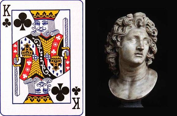 扑克牌国王胸前十字架图案是亚历山大大帝的标志。