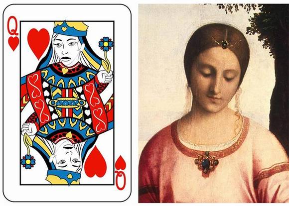 扑克上这位手握玫瑰的阿金尼女王,就是后来的扑克设计者为了纪念这次战争而创造的人物,她象征着和平。