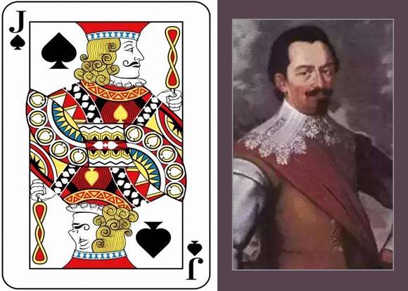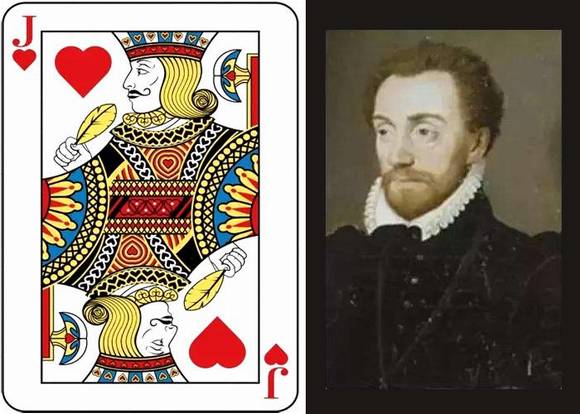 红桃J上面的人物是拉海尔,他在英法百年战争中,担任指挥官,是查理七世的得力助手。曾经领导了前锋部队并在帕提战役中获得一次重要的胜利。