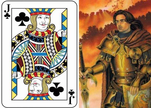 梅花J上面的人物是瑟王圆桌骑士中的一员兰斯洛特,此人长相英俊,是一名出色的弓箭手。他还曾经与王后发生恋情导致与亚瑟王发生了战争。