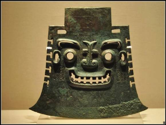 亚丑钺(yuè)是至今发现的商代铜钺中最为精美的一件,因两面的铭文“亚丑”而得名。长32.7厘米,刃宽34.5厘米,两肩有棱,弧形刃。它的外形非常的特别,铜钺的内部使用透雕的方式展现了一个人面纹,眉毛、眼睛、鼻子呈凸起状,嘴巴下凹。怒目圆瞪,龇牙咧嘴,非常的威武生动。