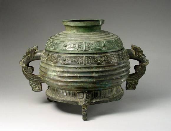 颂簋(guǐ)是西周晚期青铜器,高30.1厘米,直径24.2厘米。口沿上下装饰窃曲纹,腹部为凸起的玄纹,兽面象鼻足,双兽耳,庄重大方。颂簋最为珍贵的是器物内底和器盖有152字对铭,记载了一次册命典礼的全过程。而接受册命的人就是颂。