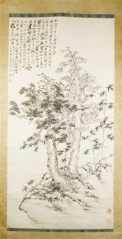 10、郑燮双松图轴