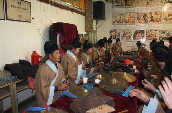 鼓吹乐的传承者——如今肩负着后山“后土黄帝”祭祀仪式主持事宜的民间音乐会,每年阴历正月初三伶伦诞辰日,也来这里向塔上的砖雕“乐工”点笙对调,确保丝毫不差地将老祖宗伶伦创造的祭祀祖宗的“天音神乐”继承下来,将祭祀活动中的“请祖”、“送神”的礼仪继承下来,传承下去,以保祖宗香火永世不断。
