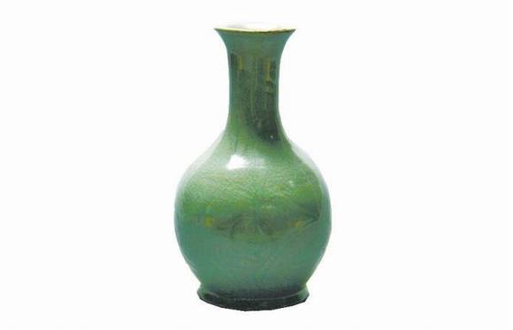 4、汝官窑天蓝釉刻花鹅颈瓶