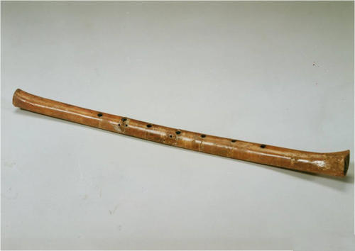 距今7800年~9000年的河南贾湖遗址,是同时期最为丰富的史前聚落遗址。这里先后出土了30多支用丹顶鹤尺骨制成的骨笛。笛孔有2、5、6、7、8之别,大多数骨笛仍为7孔。