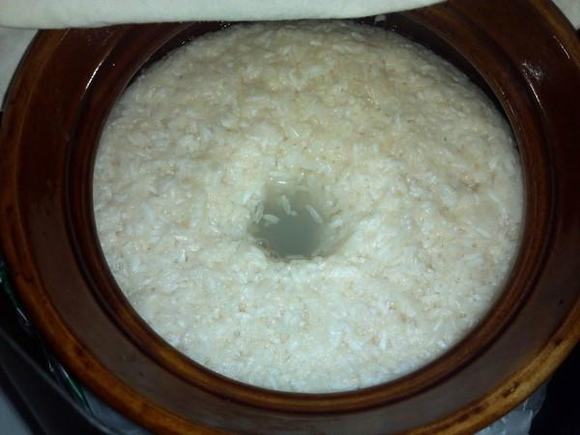 ⑷复蒸:将润好水的大米再装入甑中,加大火复蒸。前45-60分钟加盖蒸,后半小时敞开蒸,使大米收汗。